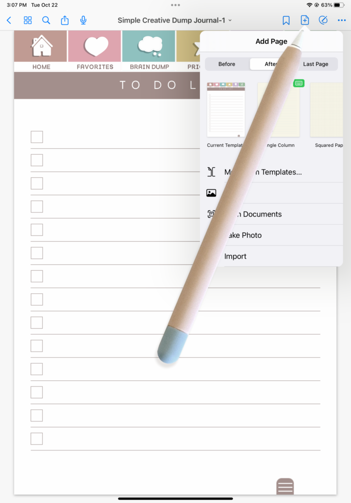 Note: This example shows how to use the journal in GoodNotes. The process should be similar in ZoomNotes or other PDF reader apps. If you have questions, contact me for support.