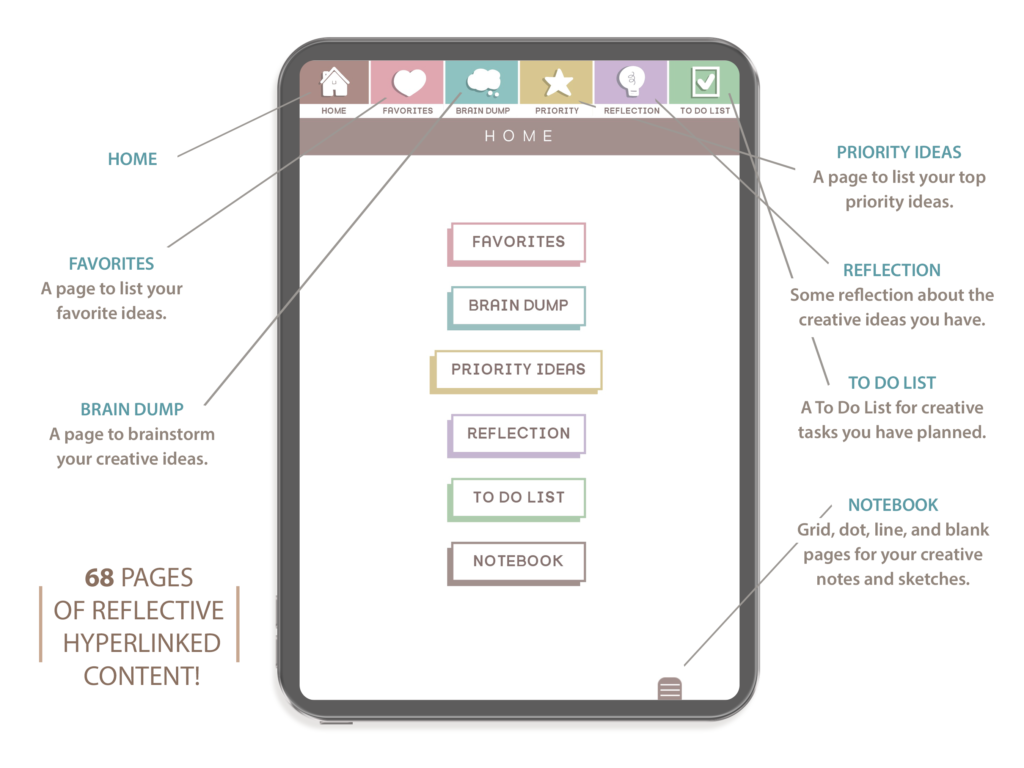 Note: This image shows what content is linked to each tab in the journal.